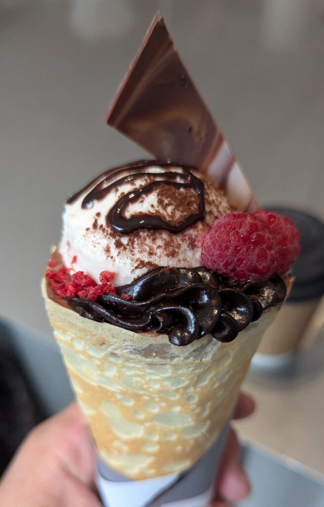 クレープが“スイーツ”を越えて“料理”のように一体で楽しめるよう調整されているのがわかります。